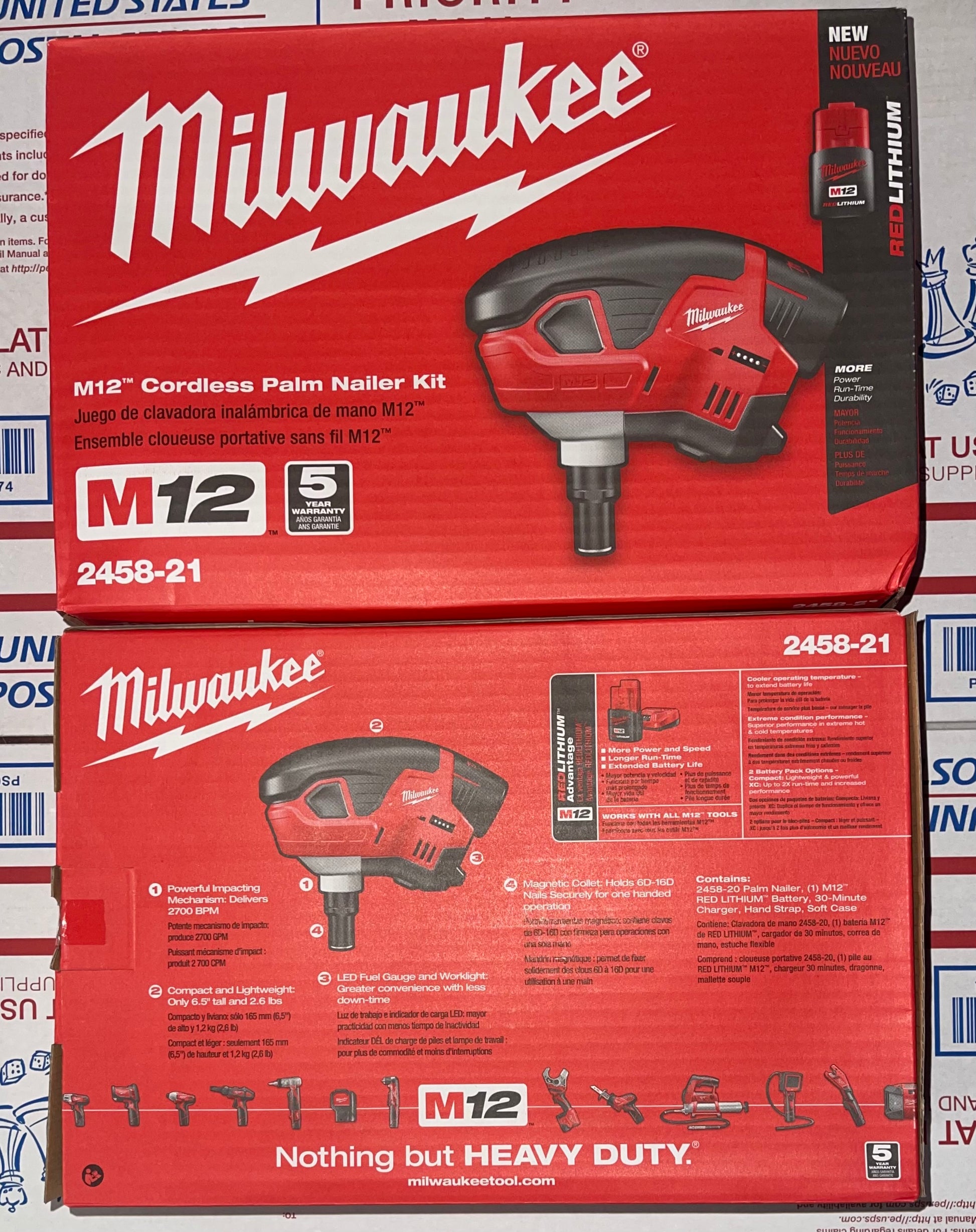 Milwaukee M12 Cordless Palm Nailer Kit. Model #2458-21