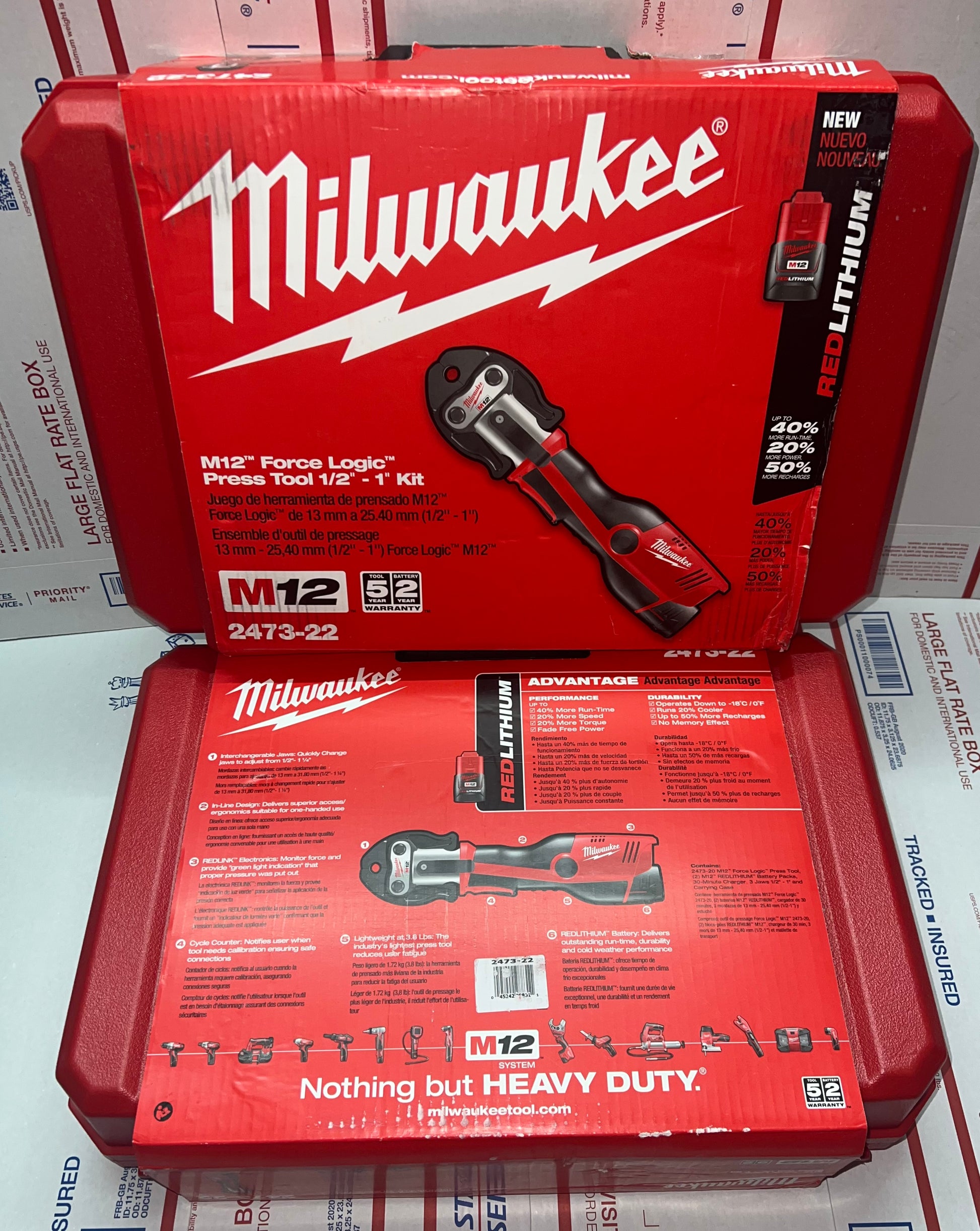 Milwaukee M12 Force Logic Press Tool 1/2”-1” Kit. Model #2473-22