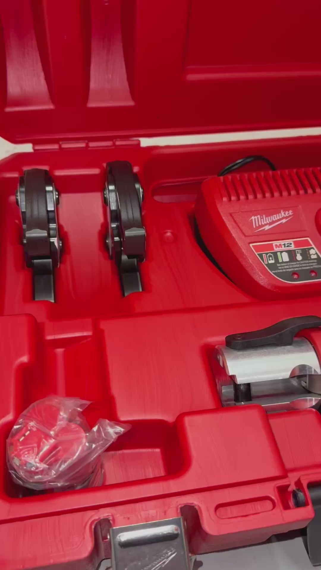 M12™ FORCE LOGIC™ Press Tool Kit with Jaws is the lightest press tool on the market and represents a new level in portability and accessibility around installed pipe. The M12™ press tool features a one-handed, in-line design enabling you to operate the tool nearly anywhere you can fit your arm. Built-in REDLINK™ technology enables the plumbing press tool to monitor the force output, delivering you with quality connections. A visual indicator alerts you when a secure connection has been achieved and when the tool needs calibration. The cordless press tool features the best calibration standards, only requiring service every 32,000 crimps. This allows you to perform up to 4X more connections between services, keeping the tool on the job site up to 4X longer than competitive units. When used with our MILWAUKEE® press jaws, this tool delivers quality press connections on all major fitting brands. Our FORCE LOGIC™ press tool is powered by Milwaukee M12™ REDLITHIUM™ batteries, allowing you to Cut, Fasten and Connect on One System. In addition to the press tool, this kit includes two M12™ REDLITHIUM™ CP1.5 battery packs, 1/2 in., 3/4 in. and 1 in. copper jaws, an M12™ REDLITHIUM™ Charger, and a carrying case.