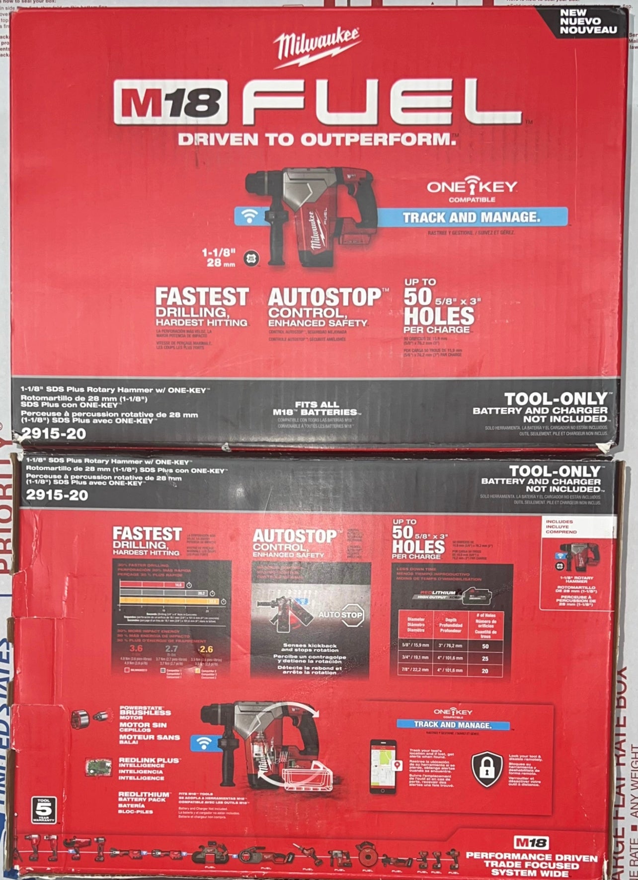 Milwaukee M18 Fuel 1-1/8” SDS PLUS Rotary Hammer w/One Key. Model #2915-20