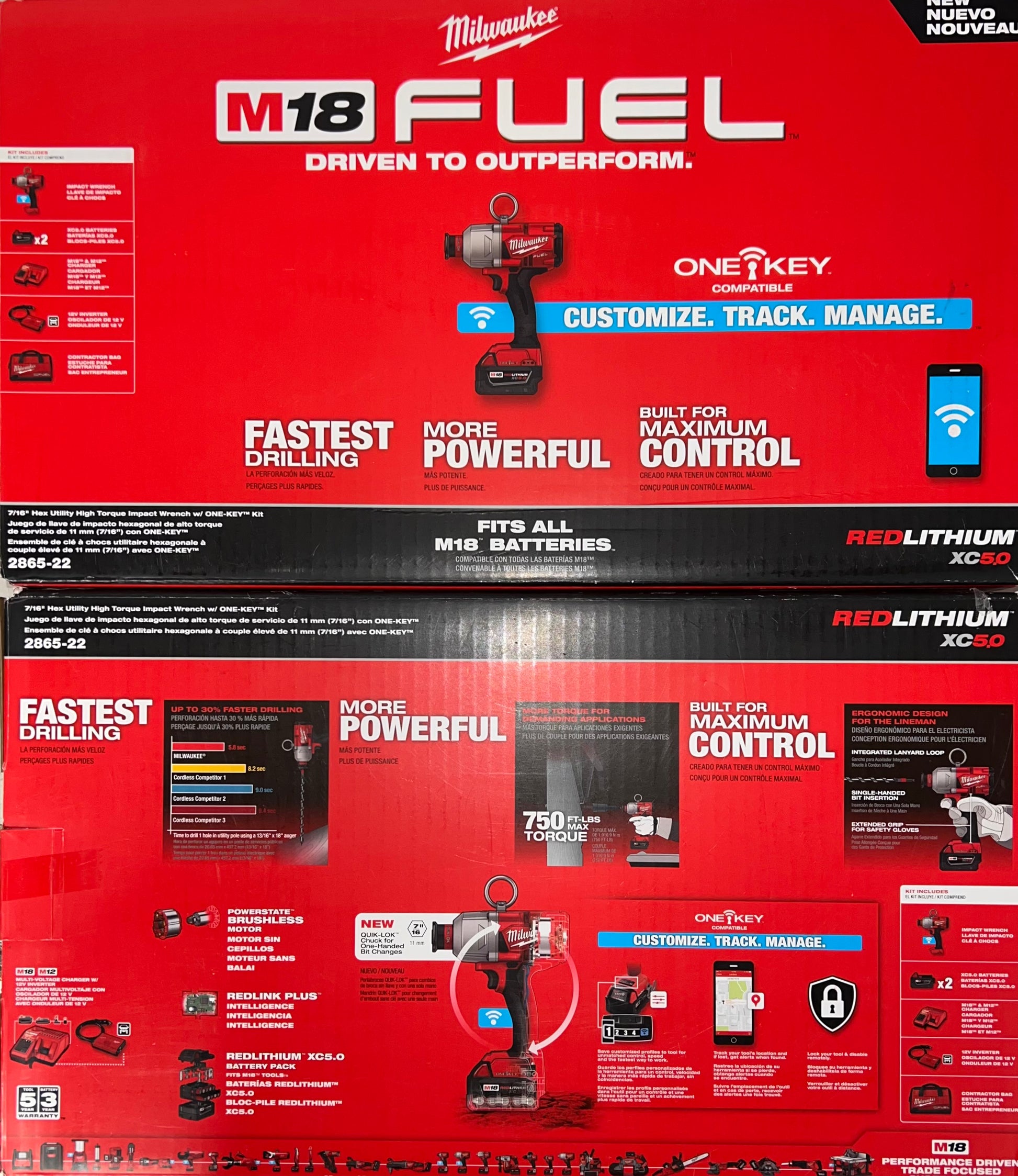Milwaukee M18 Fuel 7/16" Hex Utility Impact Wrench Kit w/One Key. Model #2865-22