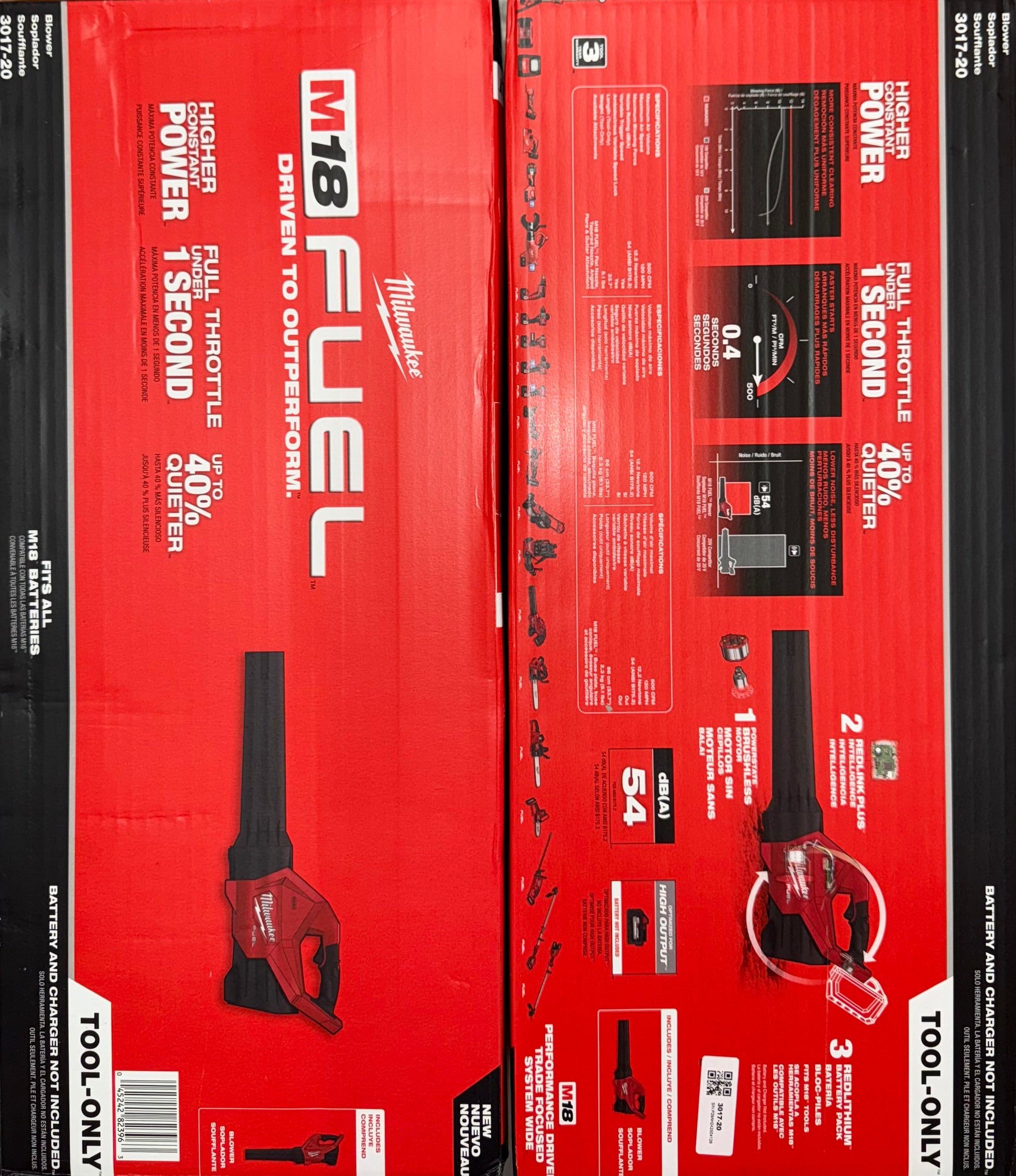 M18 FUEL™ Blower is designed to meet the needs of the landscape maintenance professional in quick, routine cleanups. The POWERSTATE™ Brushless motor delivers 500 CFM, 120 MPH, and 12.2 N providing users with Higher Constant Power levels allowing users to clear more leaves, grass, and light debris, and reach Full Throttle in Under One Second. This cordless leaf blower has low noise levels of 54dB(A), Up To 40% Quieter than the competition, allowing users to work comfortably and reducing disturbance to bystanders. REDLINKPLUS™ Intelligence offers total system communication between the blower and battery for unmatched levels of performance, protection, and productivity. The lightweight, balanced design and ambidextrous variable speed sliding lock on the lever provides users with more clearing control. This blower is optimized for use with M18™ REDLITHIUM™ HIGH OUTPUT™ batteries. The M18™ REDLITHIUM™ HIGH OUTPUT™ HD12.0 Battery Pack (not included) provides users with best-in-class power and run time. Our M18 FUEL™ Blower is part of the M18™ System, fully compatible with over 250+ solutions.