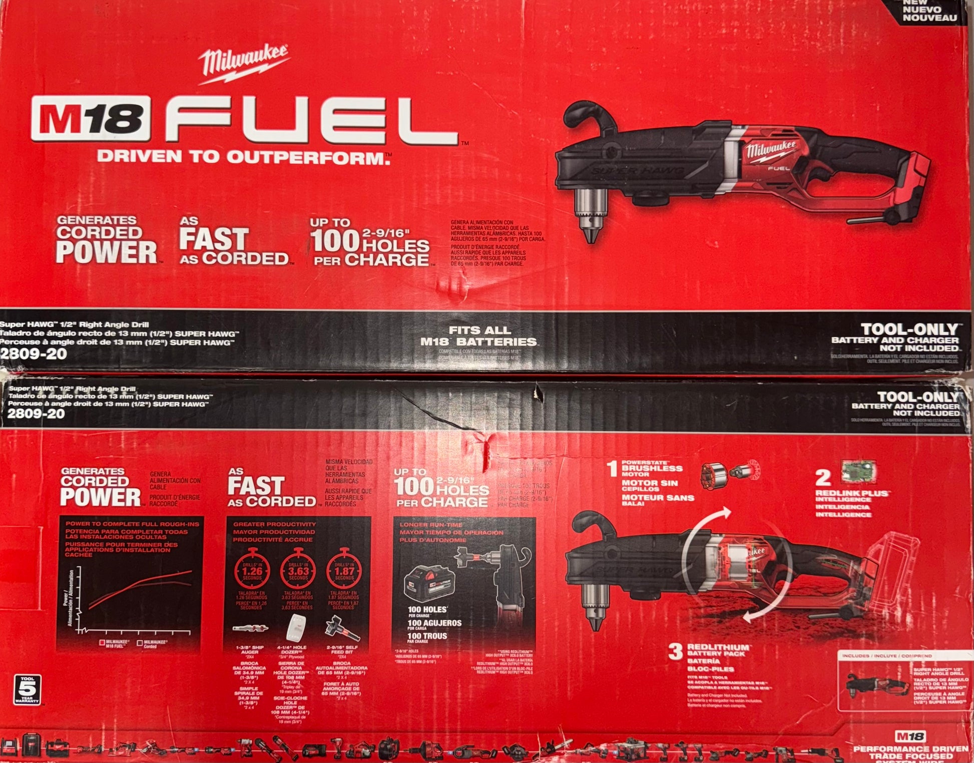 Milwaukee M18 Fuel SUPER HAWG 1/2" Right Angle Drill. Model #2809-20