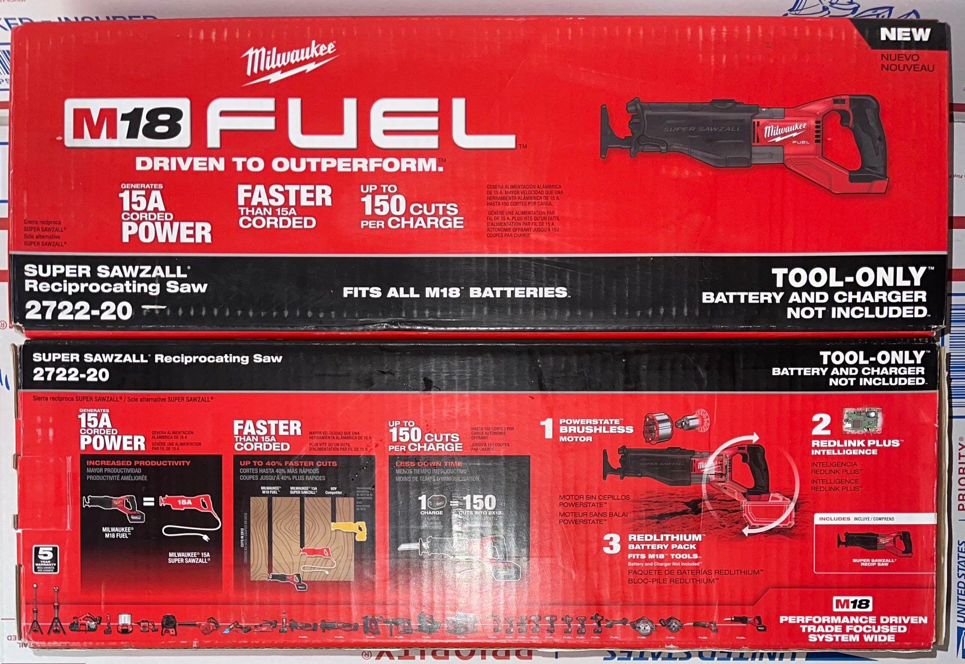 The SUPER SAWZALL® Reciprocating Saw generates 15A corded power, faster cuts than 15A reciprocating saws and delivers Up To 150 Cuts in 2x12 SPF per charge. Designed to perform in the toughest applications, the M18™ FUEL SUPER SAWZALL® combines Milwaukee's legendary performance and durability with the portability of the M18™ platform. The POWERSTATE™ Brushless Motor Provides 3,000 SPM and higher speeds under load for corded cutting performance. REDLINK PLUS™ intelligence ensures maximum performance and protection from overload, overheating and over discharge. The M18™ REDLITHIUM™ HIGH OUTPUT™ HD12.0 battery delivers unmatched run-time in all applications. The 1-1/4" stroke length removes more material with each stroke and On/Off orbital action provides aggressive cuts in wood and smooth cuts in metal. Variable speed trigger and 5-speed dial provide maximum speed control for any application. The QUIK-LOK® blade clamp allows for tool less blade changes and a rafter hook provides a convenient way to store the saw between cuts.