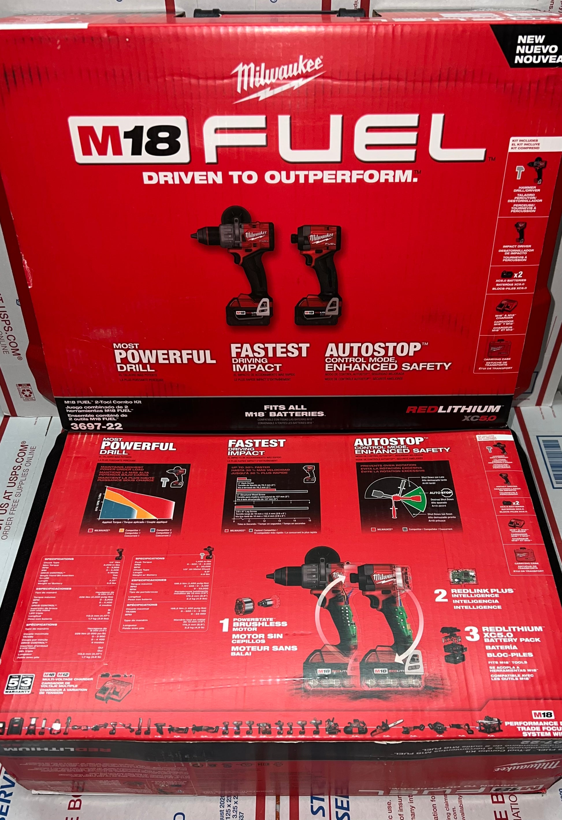 M18 FUEL 2-Tool Combo Kit has the Most Powerful Drill, including AutoStop™ Control Mode for enhanced safety and the Fastest Driving Impact Driver. Includes an M18 FUEL 1/2" Hammer Drill, M18 FUEL 1/4" Hex Impact Driver, (2) M18 REDLITHIUM™ XC 5.0Ah Battery Pack, with an M18/M12 charger and carrying case. Our M18 FUEL™ ½” Drill Driver is the Industry's Most Powerful Drill and Most Compact solution. The POWERSTATE™ Brushless motor delivers the most power under load to complete 2-9/16" Self-Feed holes in dense materials for increased productivity and capability. At only 6.9” in length, this is the most compact drill in its class. The AutoStop™ Control Mode offers enhanced safety for the user by preventing over-rotation in a bind-up with the best reaction time in the industry. Our M18 FUEL™ ¼” Hex Impact Driver is the Most POWERFUL and FASTEST DRIVING impact driver, featuring ULTIMATE TRIGGER CONTROL. Our POWERSTATE™ Brushless motor delivers unmatched power for a full range of capabilities to complete the widest variety of applications. Increase productivity on the jobsite with the fastest driving speed without sacrificing power or control. REDLINK PLUS™ intelligence delivers ULTIMATE TRIGGER CONTROL by providing smooth acceleration for small fasteners to prevent stripping of screws or damaging of materials. Our M18 FUEL™ 2-Tool Combo kit is part of the M18 system which is fully compatible with over 200+ solutions.