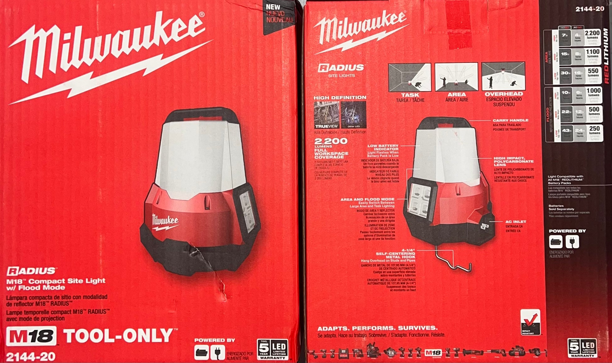 Milwaukee M18 Radius Compact Site Light w/Flood Mode. Tool Only. Model #2144-20